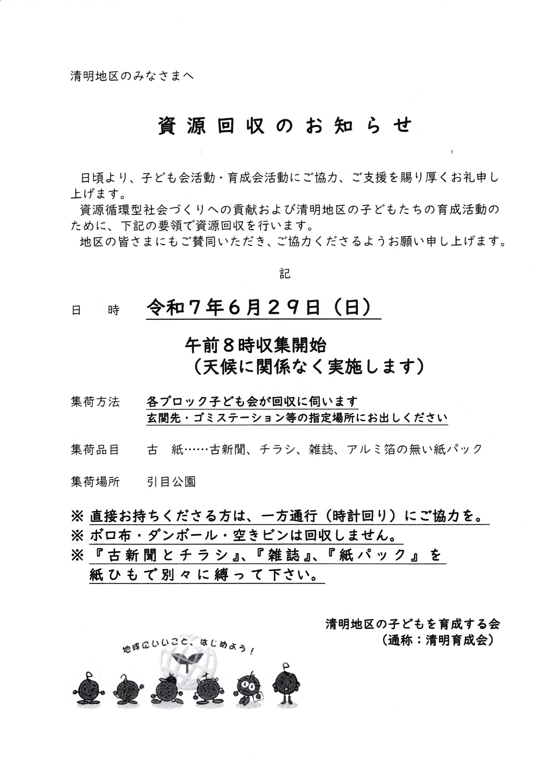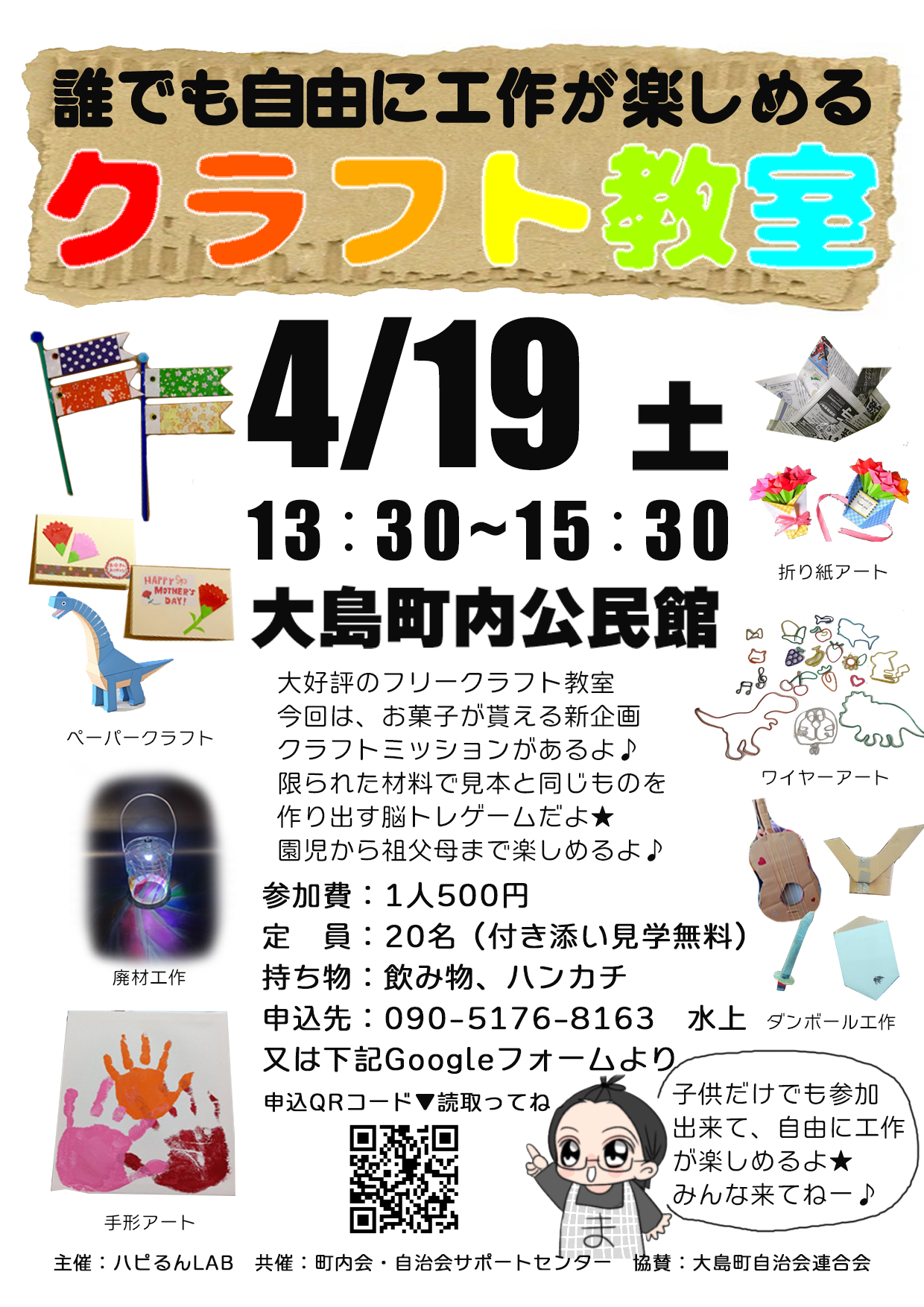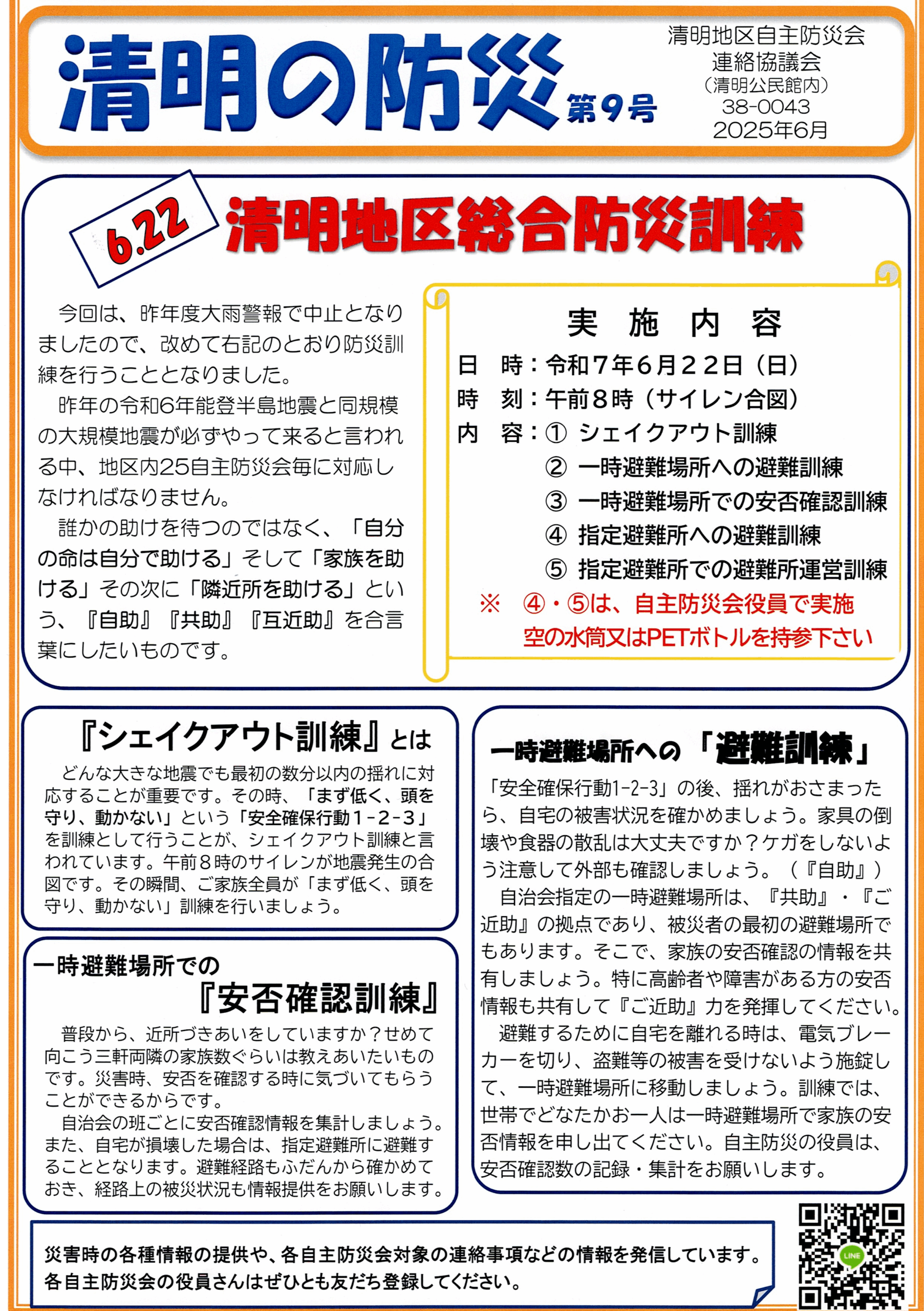 2025年06月01日 大島町回覧情報 回覧板 2025.06.01 2025年06月01日 回覧情報 清明の防災、資源回収のお知らせ、清明きらめき文化祭参加者募集、市民憲章運動市民協力金の支援依頼、、清明公民館イベント「多文化料理教室」、大島町内公民館イベント「アイシングクッキーを作ろう」 ※使い方:「タイトル文字」または「画像」をタップすると全ページを確認でき、拡大表示もできます。 清明の防災 第9号 2025.06 資源回収のお知らせ 2025.06.29 清明きらめき文化祭参加者募集 2025.06.21 市民憲章運動市民協力金の支援依頼 清明公民館イベント 多文化料理教室 2025.06.28 大島町内公民館イベント アイシングクッキーを作ろう 2025.06.15 申込はコチラ▶https://forms.gle/DzSByBoc62Us1zKy9